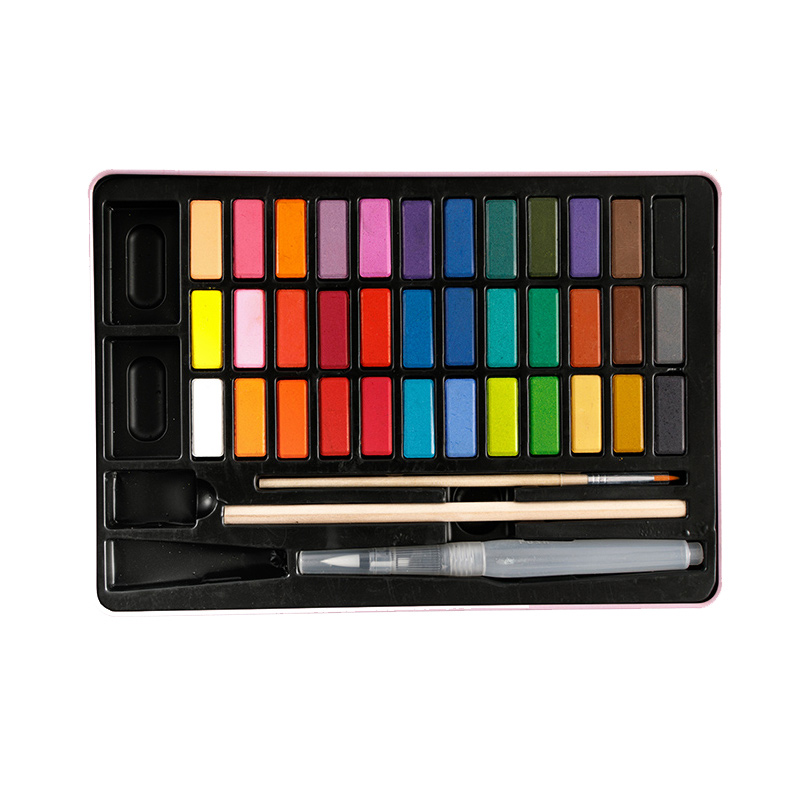 Ta paket 36 barv je popoln za ustvarjanje vaših mojstrovin. Vključuje kovinsko škatlo, čopič za akvarel in kvadratne tablice ter robustno kovinsko ohišje, da bo vse organizirano. Popoln za slikanje mojstrovine vaših sanj!